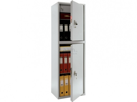 AIKO SL-150/2Т №14233 - высота (внешняя): 149 см, высота (внутренняя): 46+85,8 см, ширина (внешняя): 46 см, ширина (внутренняя): 45,7 см, глубина (внешняя): 34 см, глубина (внутренняя): 29,7 см, вместимость: 17 (папки 60 мм), количество полок: 1х3, встроенное отделение: +, тип замка: два ключевых, цвет: светло-серый структурированный, тип покрытия: порошковое, гарантия: 1 год, гарантия на замок: 1 год, страна-производитель: россия.