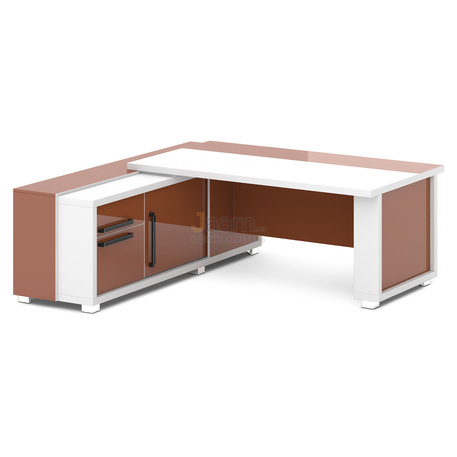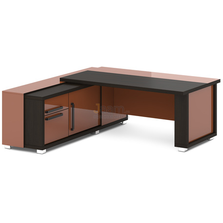 Стол руководителя с тумбой-греденцией L-116пр/л №18300 - кромка: пвх, покрытие: ламинат, стекло: бронза сатинат в алюминиевом профиле, цвет профиля - коньяк.