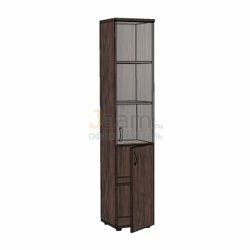 Офисный шкаф узкий со стеклом пр./бронза ЛФ219