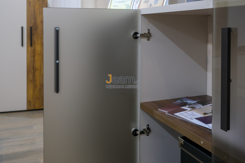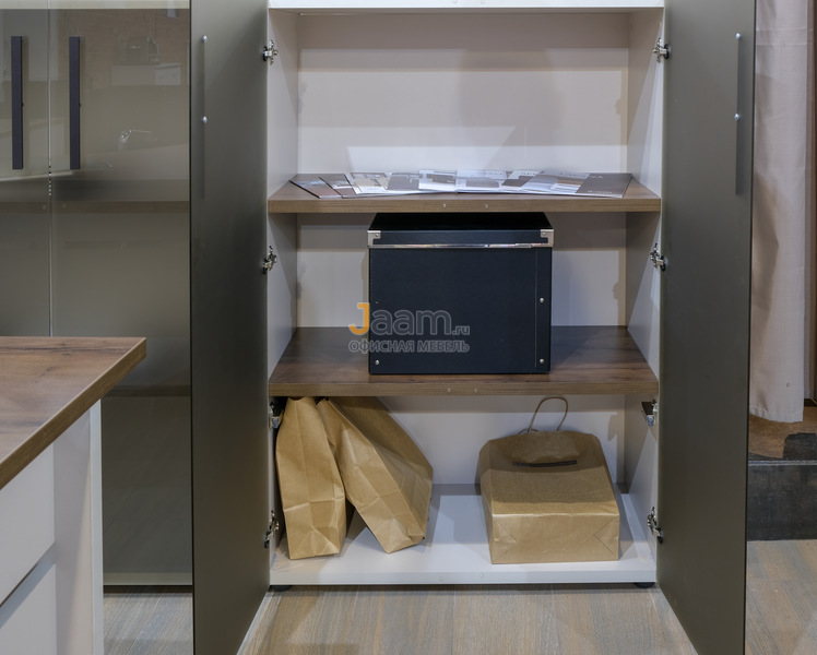Комплект мебели для персонала Lavana позволяет на «отлично» выдержать деловую атмосферу в офисном помещении. Простые линии, минималистические конструкции предметов этого ансамбля дарят ощущение легкости. Прозрачные стеклянные фасады дополняют «воздушный» характер комплекта. Сочетание однотонной поверхности с отдельными зонами «под дерево» делают композицию притягательно «объемной». Отсутствие декора позволяет предметам серии Lavana органично вписаться в любой интерьер современной направленности.